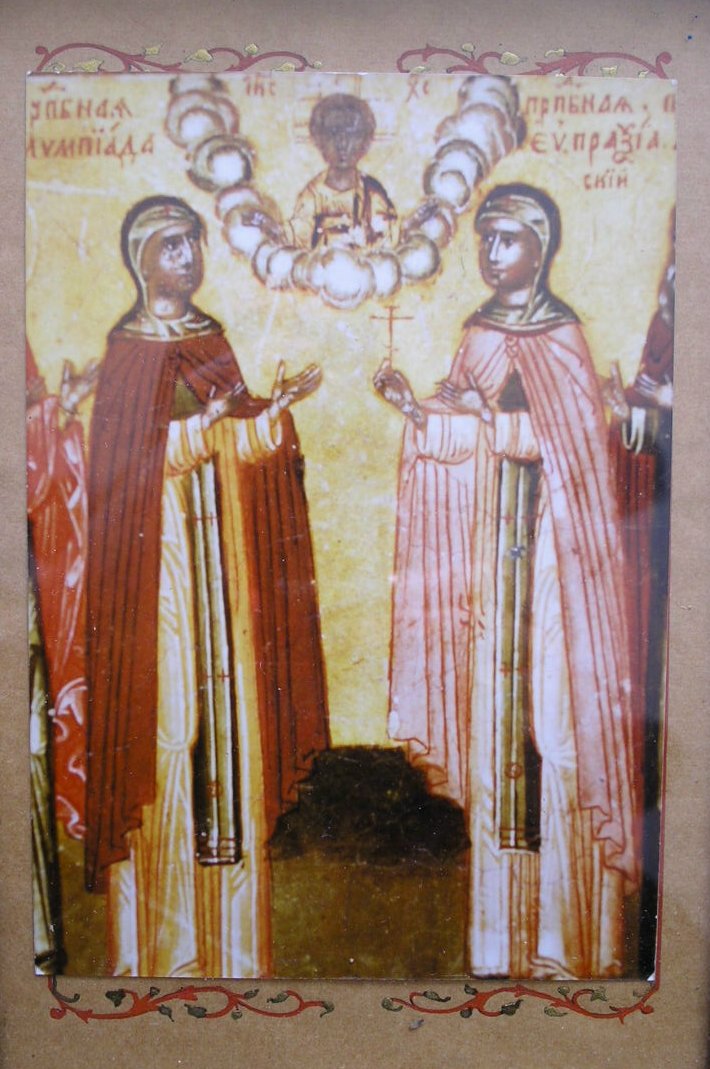 Sur la couverture on aperçoit, à gauche sainte Olympias, la diaconesse orientale la plus célèbre. A droite, une martyre, sainte Eupraxie. On remarque qu'elles portent une étole (Cet ouvrage ne se trouve plus en librairie. Sa vente peut se faire par mon Email.)