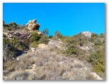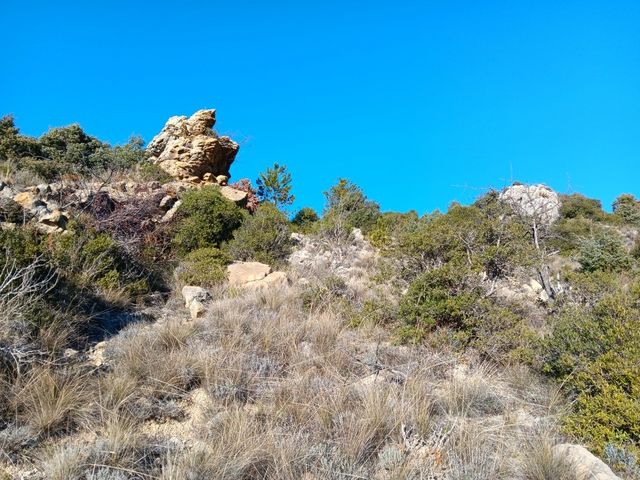 accès difficile, caillouteux, pas de sentier tracé,