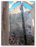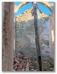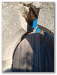 La façade se fend, clef de voute de la porte tombée, ..